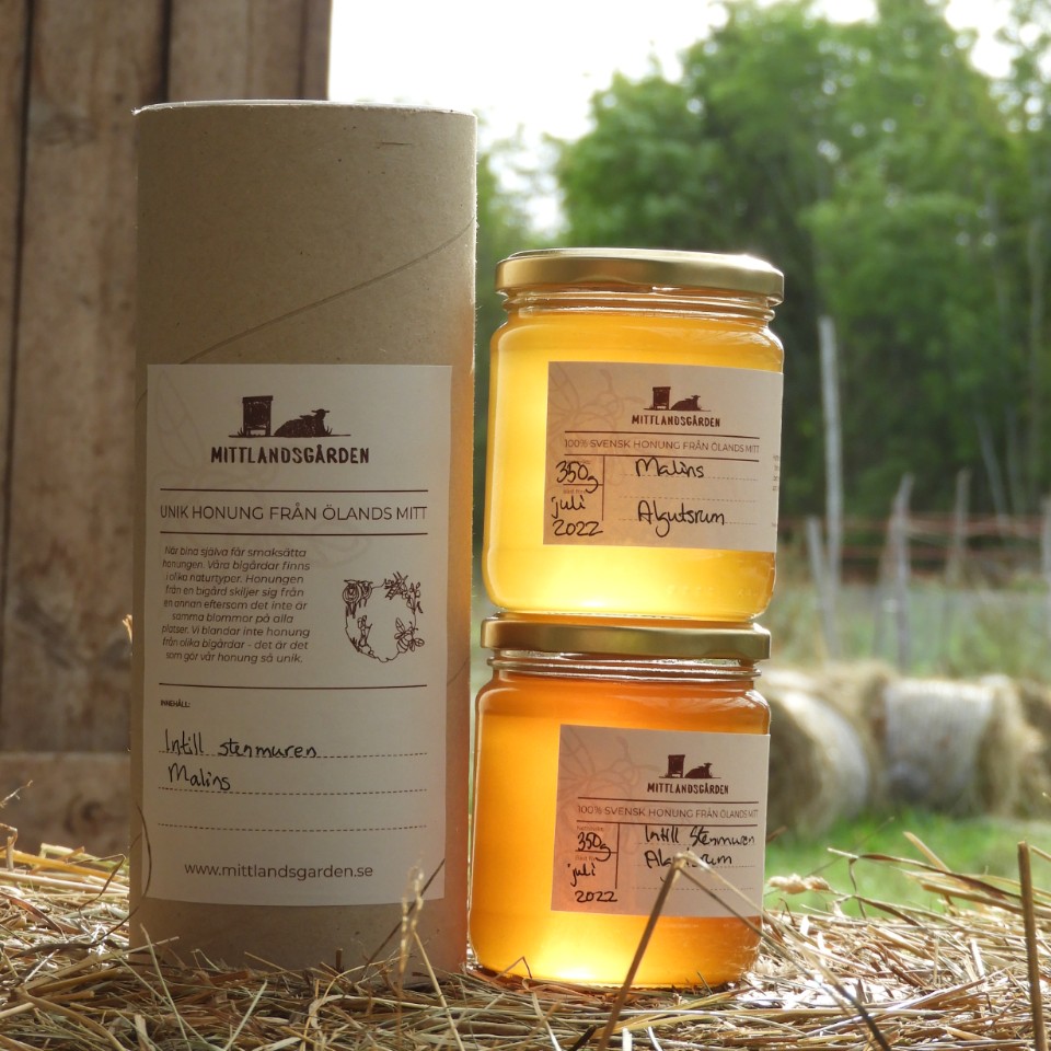 En doft, en smak och plötsligt förflyttas du till en annan plats. I vår honung ryms drömmen om Öland – den där soliga dagen då du vandrade bland vackra blommor och fladdrande fjärilar med vinden lekande i ditt hår. Eller den sköna svalkan i Mittlandsskogens halvdunkel. I Mittlandsgårdens presentförpackning med tre unika honungar har varje sort sin egen berättelse – en berättelse om blommor och bin och sommaren på Öland.